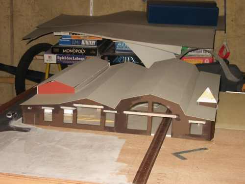 Das Modell der Maschinenfabrik (MA) Hettner ist die Keimzelle des AK Erfttalbahn. Eigentlich war sie als Diorama geplant, ist aber dann zur Grundlage der gesamten Anlage geworden. Baubeginn war 1999, aber es gibt noch einiges zu tun. So fehlen teilweise noch die Fenster und das Dach ist auch nur ein Provisorium aus Pappe.
