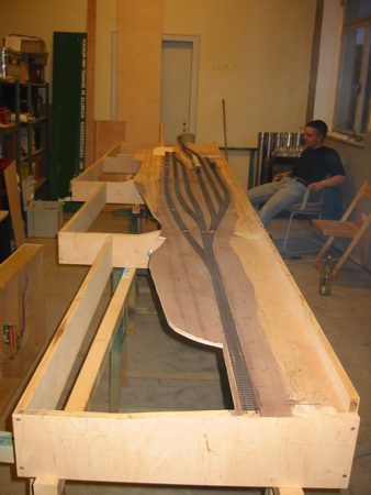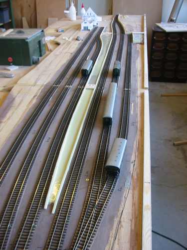 Fertig eingelegte Trassenbretter, sie müssen nur noch dem Gelände angepasst werden.