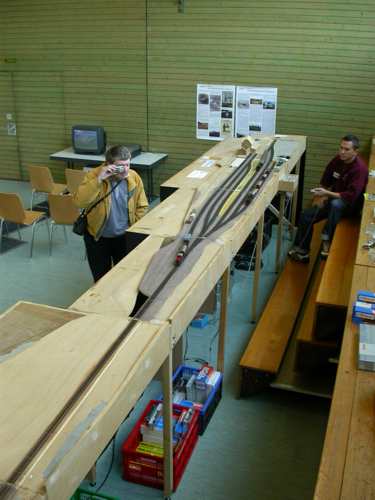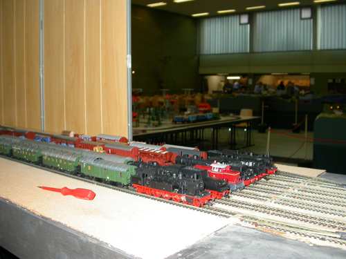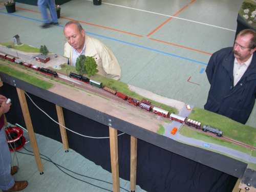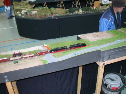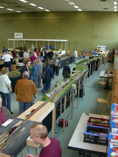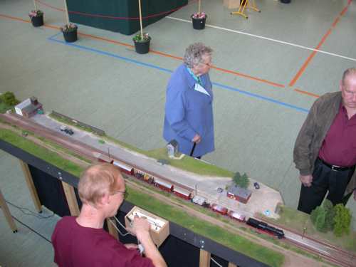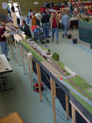 Stellvertretend für den Eisenbahnclub Euskirchen e.V. (ECE) nahmen wir vom 22. bis 23. Oktober 2005 an der Modellbahnausstellung des Modellbahnclubs St.Ingbert e.V. in St.Ingbert/Rohrbach (Saarland) teil. Zur Ausstellung haben wir die komplett Anlage (27m Länge) mitgenommen. Anzumerken ist, dass, obwohl die meisten Module zwei Jahre eingemottet in Kellern und auf Dachböden verbacht haben, die gesamte Anlage nach dem Zusammenbau sofort fehlerfrei lief. Lediglich ein Kable eines Weichenantriebs im Schattenbahnhof hatte sich gelöst.