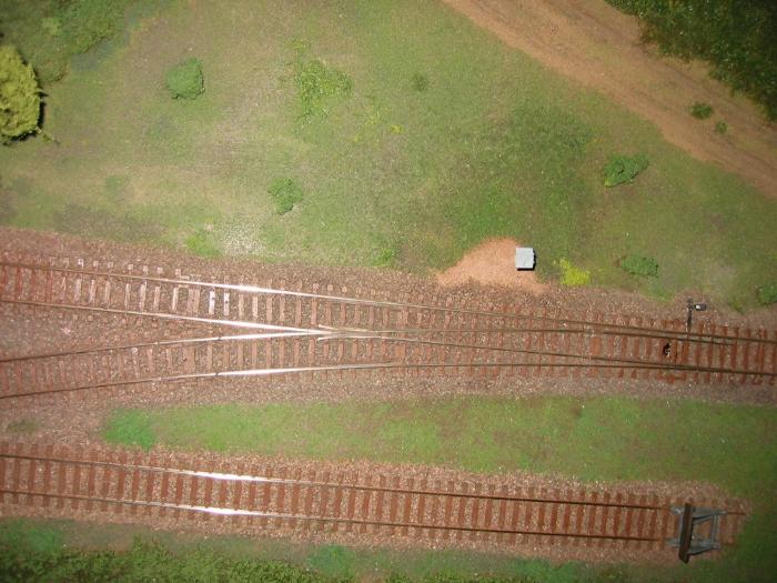 Die Wahl des Gleissystems fiel bei den ersten Modulen, der Maschinenfabrik Hettner, auf Roco Line (Profilhöhe 2,1mm). Inzwischen benutzen wir für Weichen Tillig (Pilz) Elite Gleissystem. Vorteil ist das man die Weichen, ebenso wie Flexgleise, in (leichte) Kurven legen kann. Außerdem kommen sie dem Vorbild in soweit näher, das sie kein Gelenk besitzen, sondern über die Flexibilität der Profile gestellt werden. Des weitern ist die Stromführung im Herzstück zuverlässiger, jedoch entfällt keinesfalls das polarisieren.
