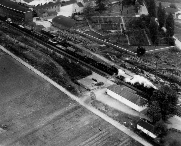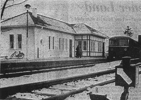 "Schmucker kleiner Bahnhof" titelte der Kölner Stadt Anzeiger am 19.02.1955 zur Eröffnung des neuen Stationsgebäudes. Zusammen mit einem Schienenbus der Baureihe VT 95 zeigt das Bild das gerade eröffnete Empfangsgebäude mit "gemütlicher Gaststube". (Sammlung Alexander Klein)