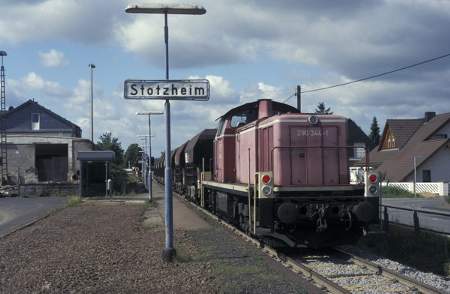 Der Bahnhof Stotzheim liegt bei km 4,39 und 185,57 m über NN (Normal Null).