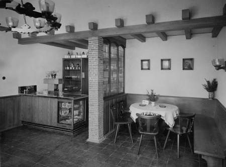 Bahnhof Stotzheim um 1930; Gastraum der Bahnhofsgaststätte in den 1950er Jahren (Sammlung Alexander Klein)