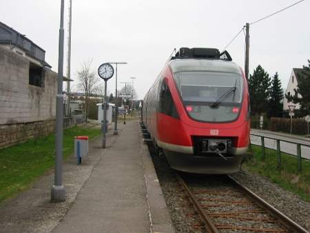 Einfahrt in den Bahnhof Stotzheim mit 644 023 am 5.April 2002. (Fotos: Alexander Klein)